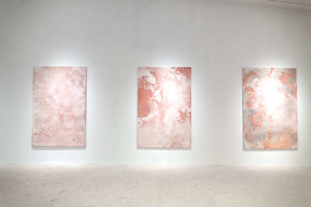 Common Ground parte del descubrimiento de lagunas saladas teñidas de rosa en Australia, México y las salinas de Torrevieja (Alicante). Keke Vilabelda utiliza este fenómeno para explorar lo físico, lo geológico y lo perceptivo. La muestra incluye un video multicanal con imágenes aéreas de paisajes en constante transformación y lienzos de gran formato en los que reproduce estas mutaciones cromáticas mediante procesos de calor, humedad y sedimentación. Vilabelda explica que su obra “rastrea un paisaje que no es una imagen fija sino una experiencia sensitiva y dinámica, en permanente cambio y reclama una mirada poética y científica a la vez”, invitando al espectador a reconocer que formamos parte inseparable de la naturaleza y a reflexionar sobre el impacto humano en el planeta.