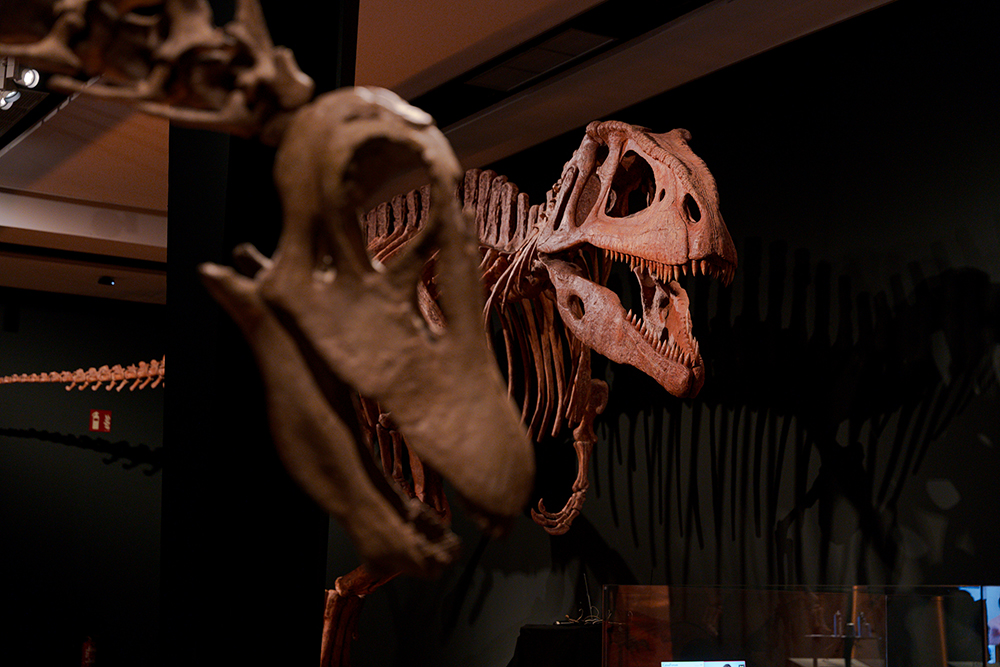 La estrella de la muestra es una réplica a tamaño real del mayor dinosaurio conocido hasta el momento, el Patagotitan mayorum, que midió cerca de 40 metros de largo y que pudo pesar alrededor de 70 toneladas. Esta réplica se exhibe en el interior de CaixaForum València, frente a la NUBE, a la vista de todos los ciudadanos que entren al centro. La muestra, que podrá verse hasta el 1 de marzo en CaixaForum València, contiene más joyas de la paleontología, como otra de las especies más grandes, el Tyrannotitan chubutensis, y algunas de las más pequeñas, como el Manidens condorensis, de apenas un kilo de peso.