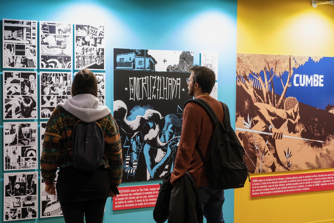 El ámbito digital tiene su espacio con Zebra Comics: el cómic africano conquista el móvil, exposición centrada en el proyecto nacido en Camerún que ha impulsado el webtoon africano a través de una aplicación pionera. La muestra repasa su origen, las circunstancias que propiciaron su desarrollo y su apuesta por narrar África desde África, conectando a creadores y lectores de distintos puntos del mundo y consolidando un ecosistema creativo panafricano en el entorno móvil. A través de materiales explicativos y una selección de obras disponibles en la plataforma, el recorrido muestra cómo Zebra Comics sitúa las narrativas africanas en el centro del entretenimiento digital global.