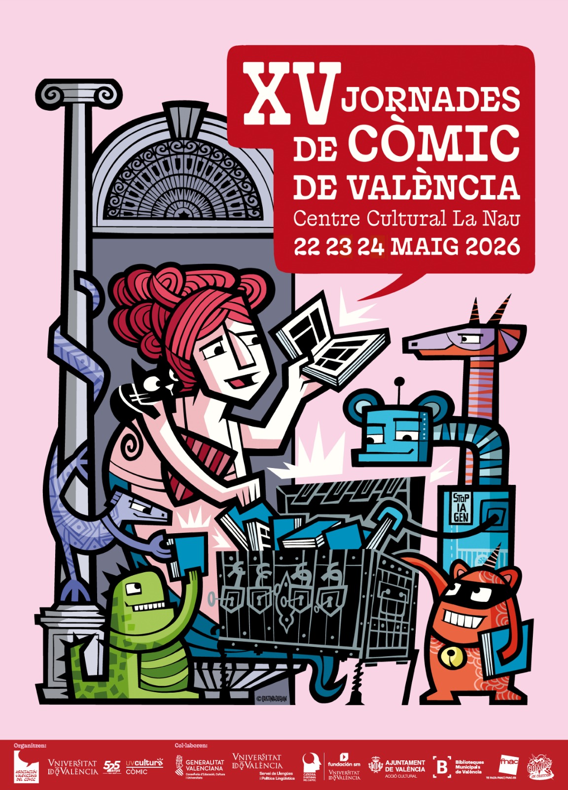 Las XV Jornadas de Còmic cuentan con la colaboración de la Generalitat Valenciana, Ajuntament de València, Biblioteques Municipals de València, Servei de Llengües i Política Lingüística de la UV, Cátedra de Estudios del Còmic Fundación SM-UV, Cómics de Colección y FNAC.