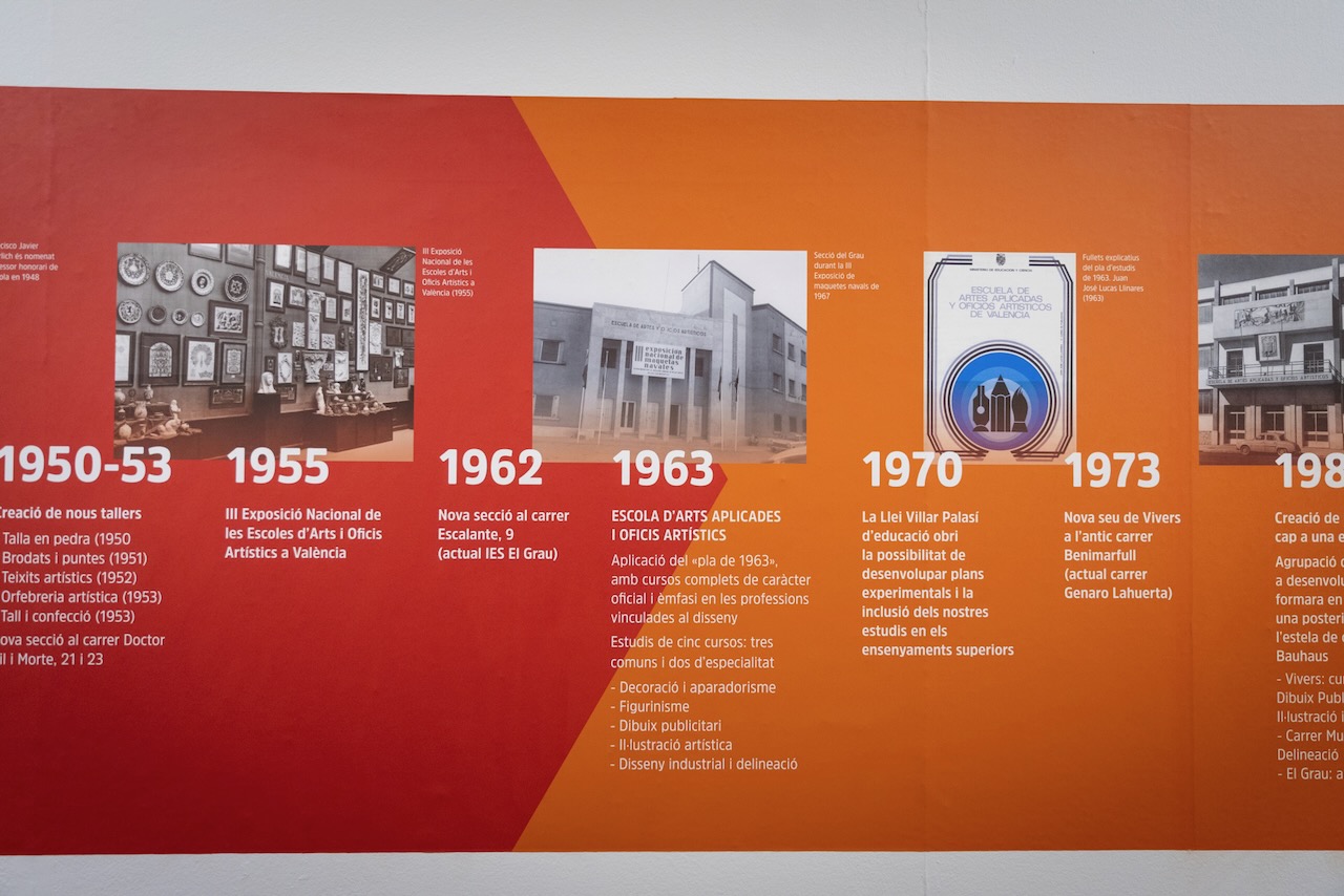 Más de un centenar de piezas repasan en el Centre del Carme la trayectoria de la Escola d’Art i Superior de Disseny de València y su impacto en el diseño contemporáneo.