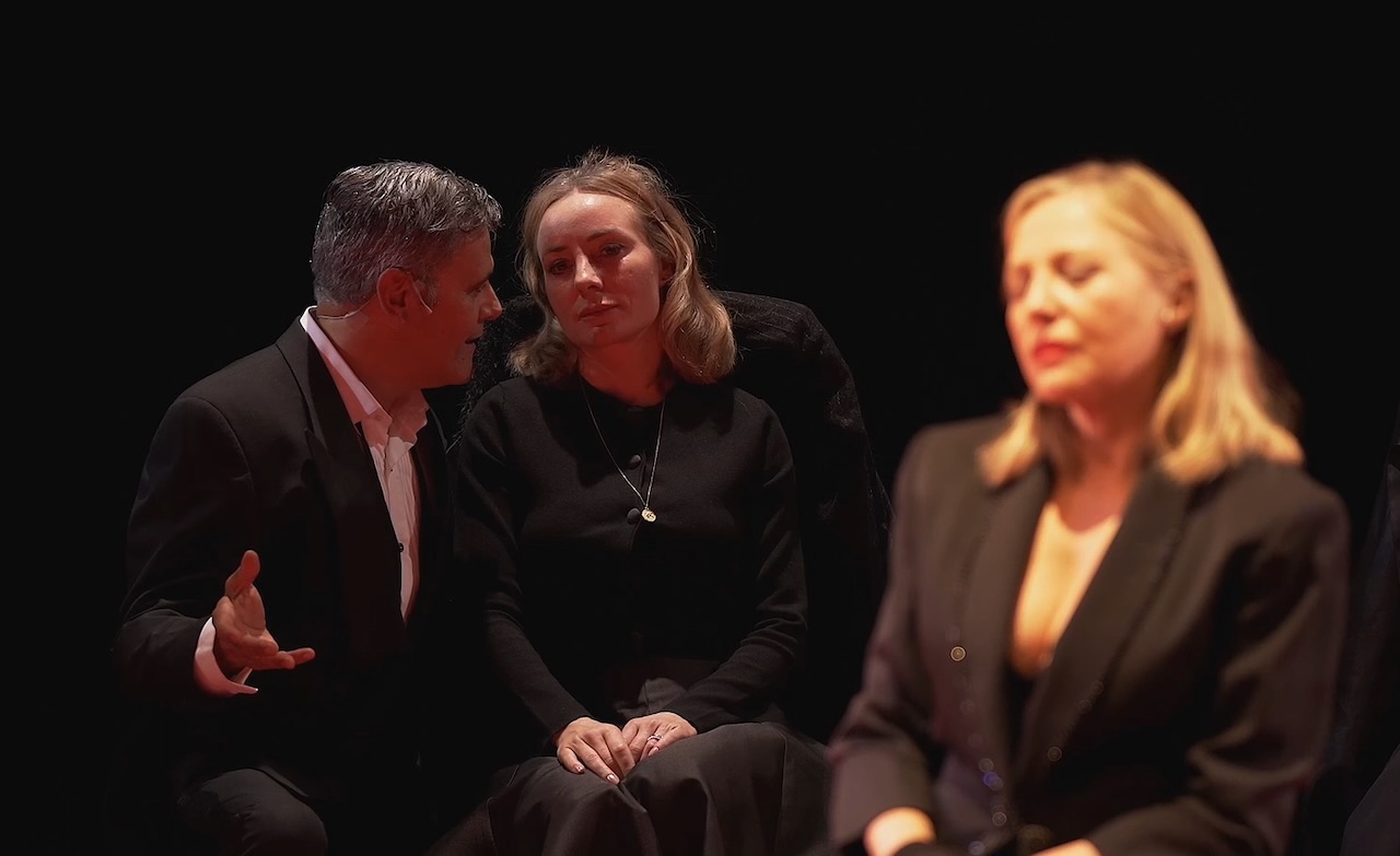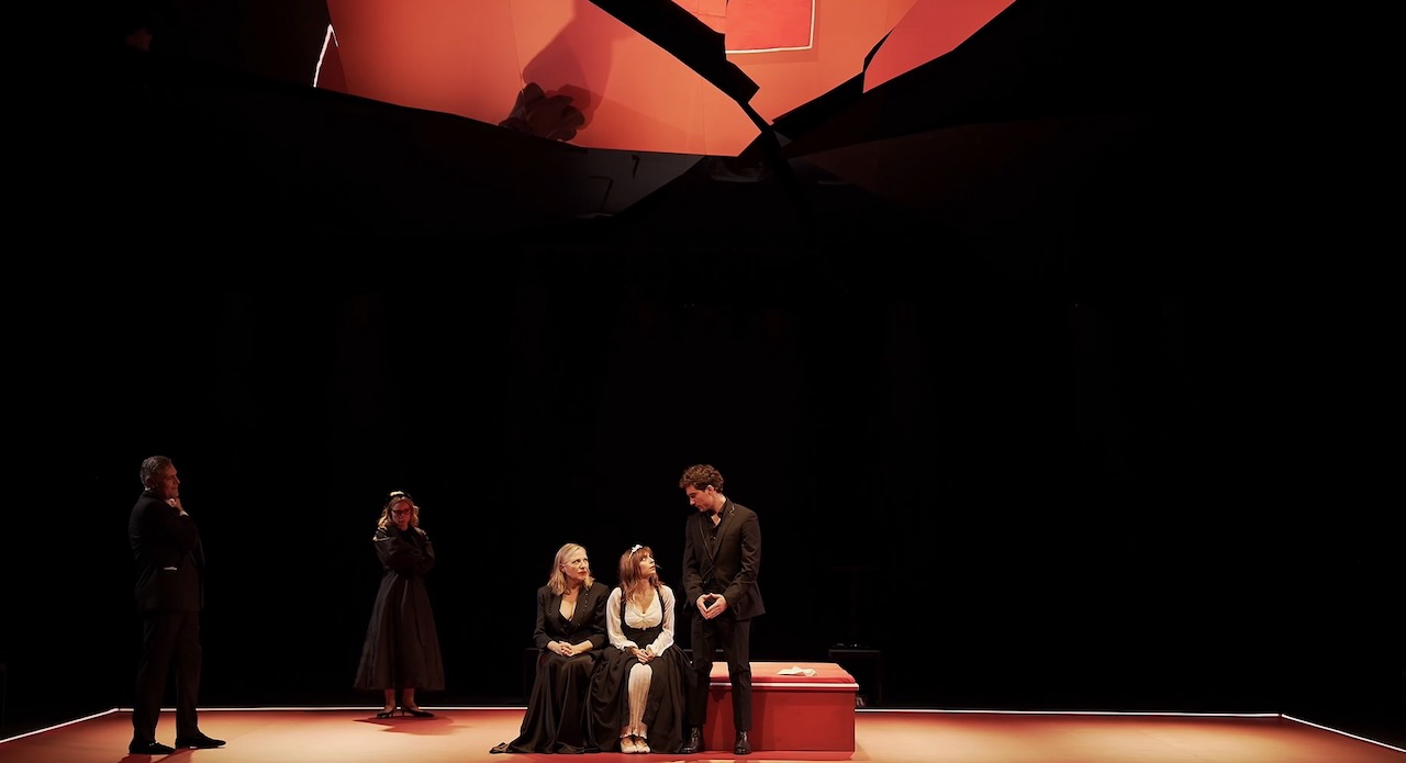 La propuesta escénica apuesta por un minimalismo radical: un espacio prácticamente vacío, limpio y elegante, sin referencias de época en vestuario o escenografía. Todo queda al servicio de la palabra y de la interpretación, reforzando la contemporaneidad del texto y colocando al público ante un espejo tan seductor como inquietante.
