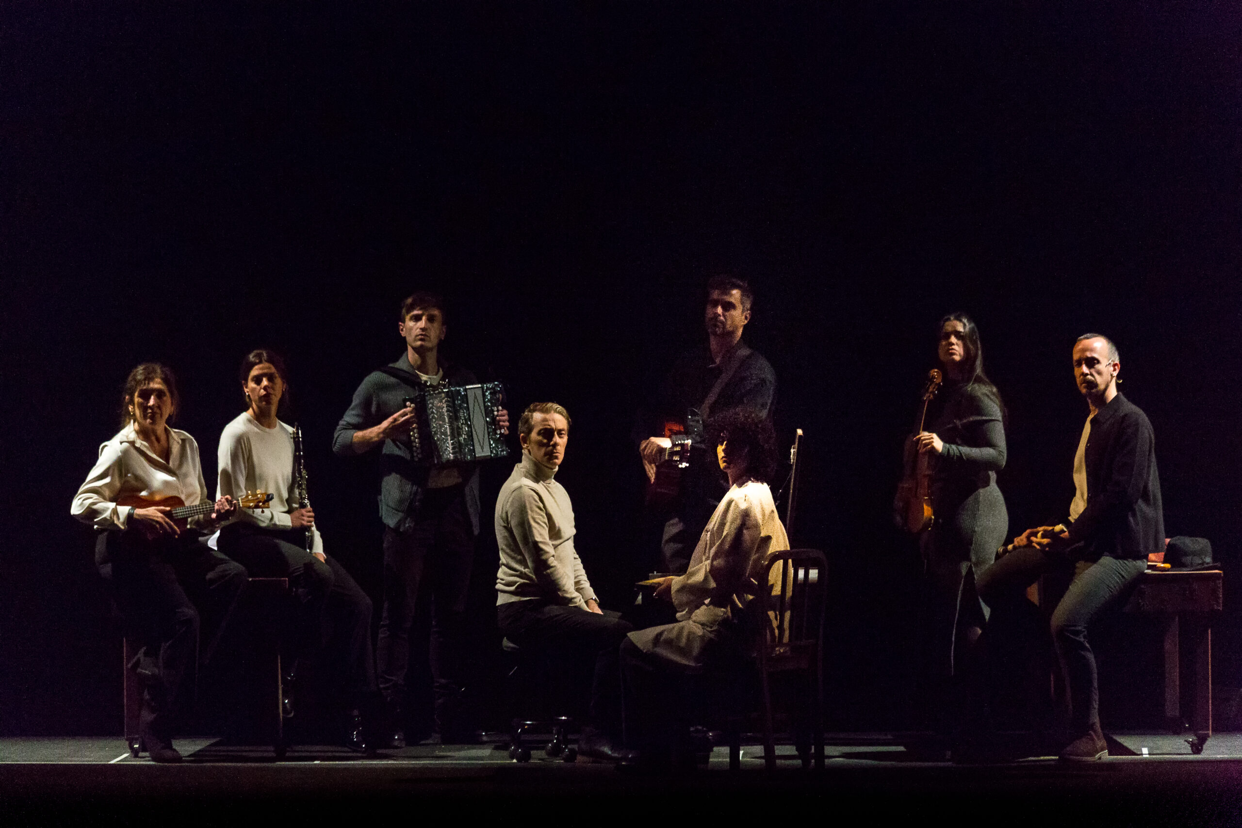 El montaje parte de unas imágenes inéditas que muestran la vida cotidiana de los oficiales que administraban Auschwitz: escenas de picnics, canciones, sonrisas y momentos de aparente normalidad captados a escasa distancia de uno de los campos de exterminio más letales de la historia. Sobre ese contraste se articula una dramaturgia que confronta al espectador con una pregunta central: cómo puede convivirse con el horror hasta integrarlo en la rutina.