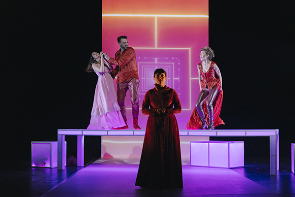 La puesta en escena apuesta por un universo híbrido que combina elementos históricos y actuales: una escenografía minimalista de Luis Crespo, iluminación de Pablo Fernández, proyecciones audiovisuales de Fede Caraduje y un paisaje sonoro de Marina Delicado con resonancias electrónicas. El vestuario diseñado por Pascual Peris mezcla tejidos contemporáneos y clásicos, reforzando ese cruce temporal que define la propuesta.