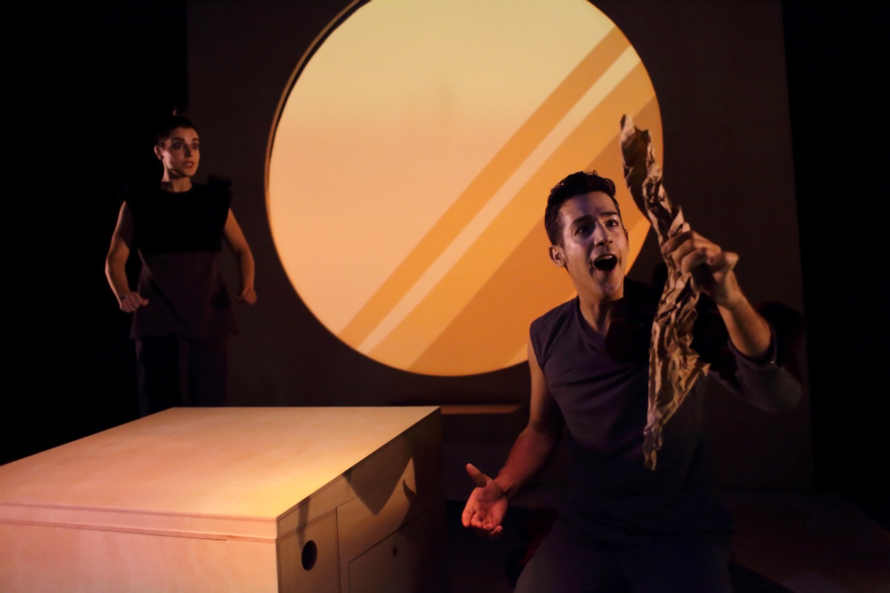 Sobre escena, los intérpretes Laura Valero y Joan Ballester afrontan el reto de transformar el espacio y los objetos en tiempo real. La interacción con dispositivos tecnológicos y la incorporación de propuestas plásticas aportan una riqueza visual y un dinamismo que amplían la experiencia narrativa y refuerzan su carácter inmersivo.