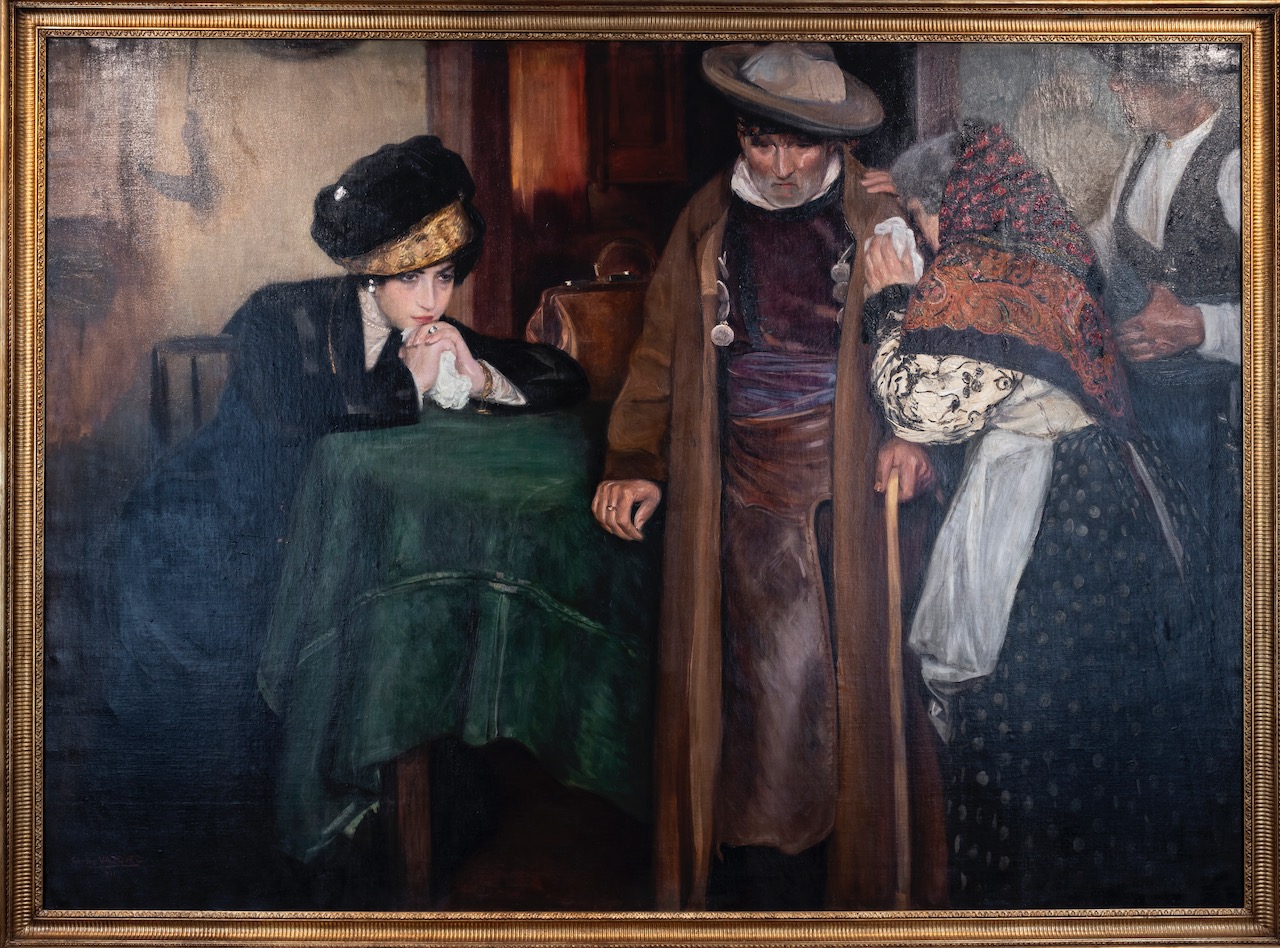 El recorrido expositivo dedica un primer ámbito a la pintura de crítica social surgida a finales del siglo XIX, en un contexto de profundas transformaciones políticas y sociales en Europa. Este género alcanzó notoriedad en España tras el reconocimiento de Luis Jiménez Aranda en la Exposición Universal de París de 1889 con La sala de hospital durante la visita del médico. En el ámbito valenciano, Antonio Fillol Granell destacó con obras como El amo o Después de la refriega, donde abordó con crudeza la desigualdad y la violencia social.